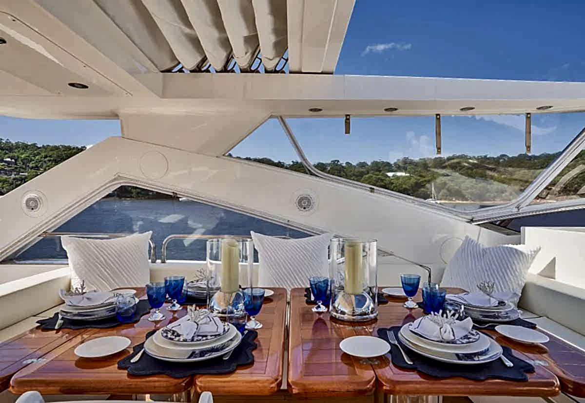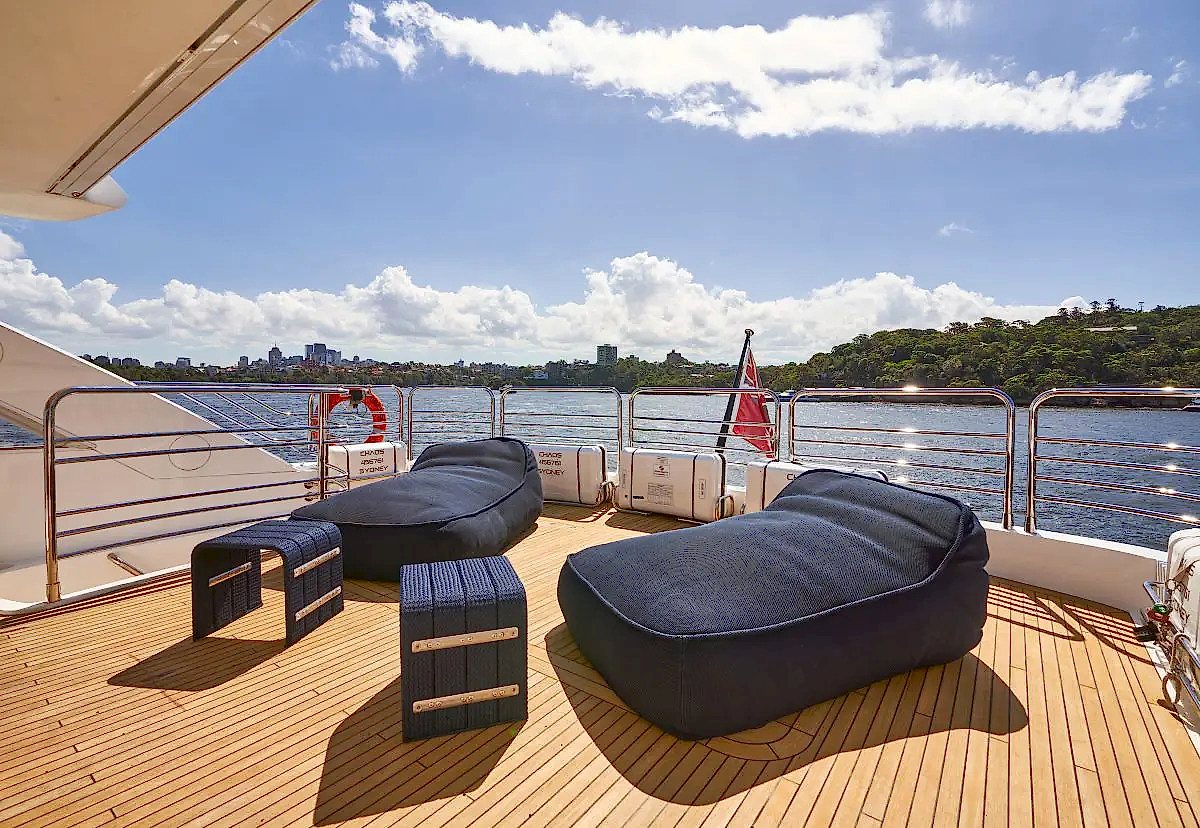 Privacy has a large open-plan design and a full-length retractable solar roof. The main deck integrates the dining, lounge and aft deck into an ideal space for entertaining and is an ideal choice for your luxury functions. It is perfect for small and medium-sized groups and for tour trips.